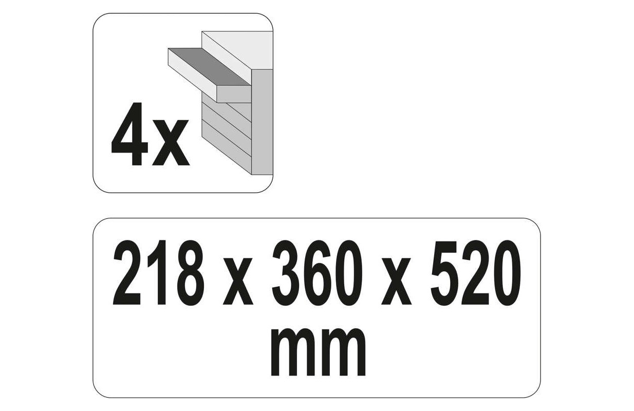 Metāla kaste instrumentiem, tukša, 4 kastes (YT-08874)