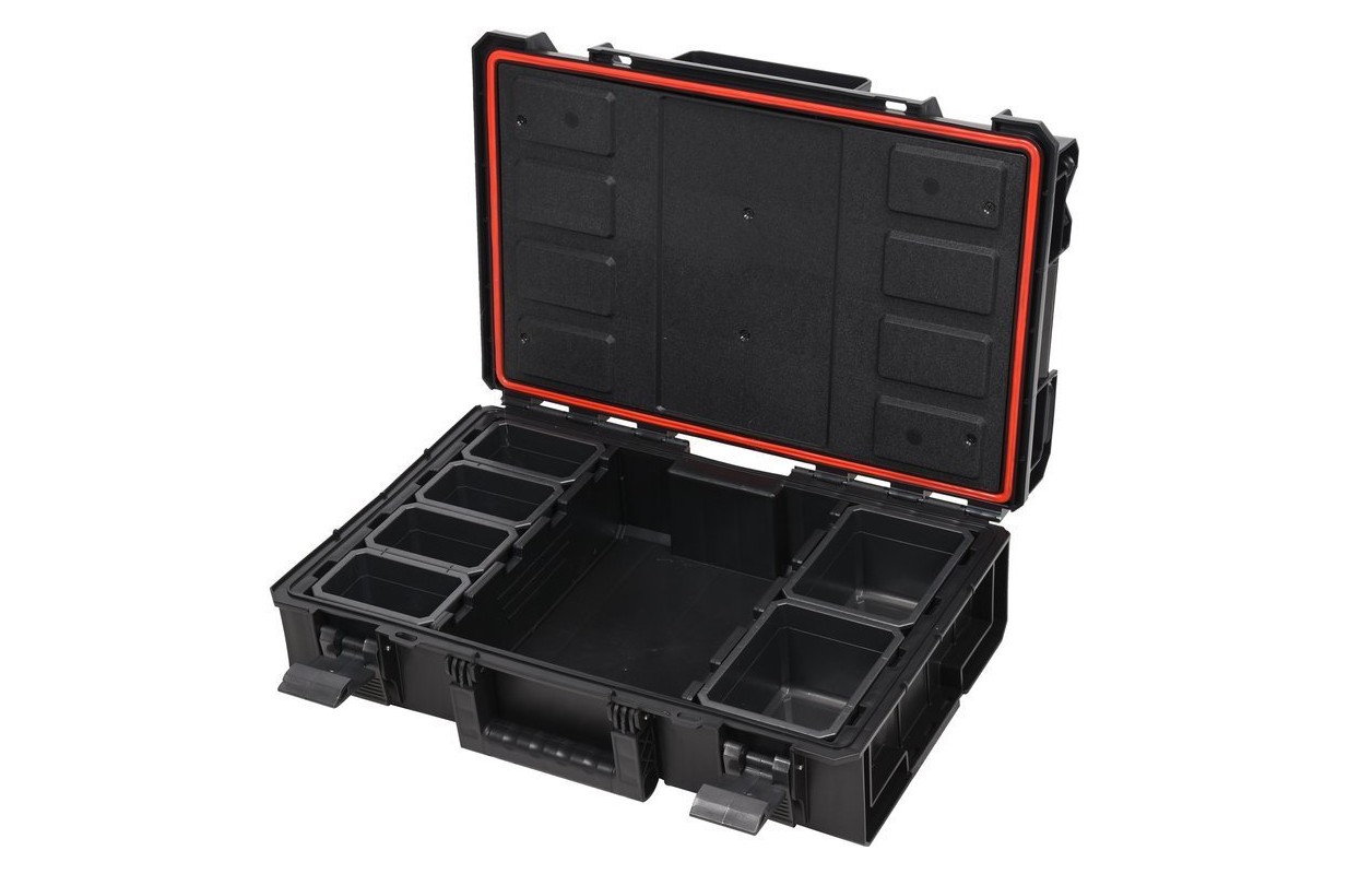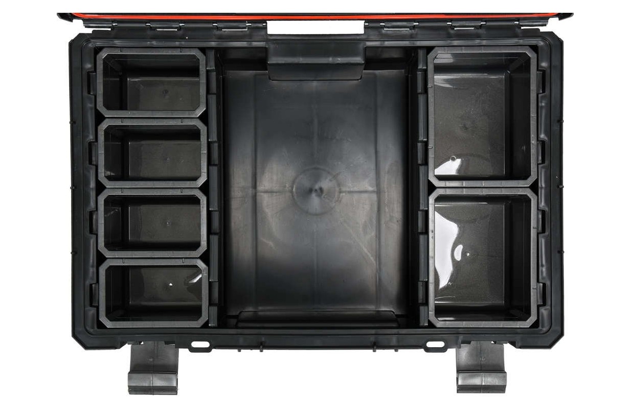 • 6 noņemami konteineri 2 izmēros, kas pielāgoti pakarināšanai uz instrumentu sienām