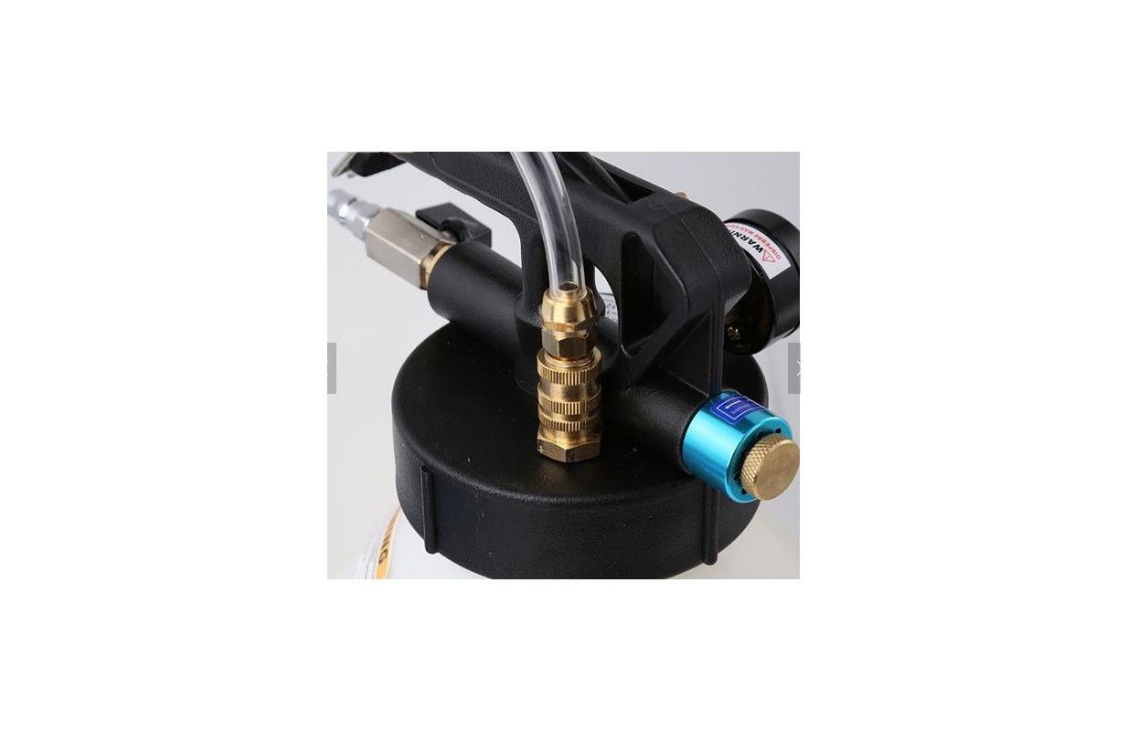 Viena cilvēka darbs. Pārnesumu/dzinēju eļļas novadīšanai un uzpildīšanai no automašīnām, motocikliem, kuģu dzinējiem, ģeneratoriem utt. 8 litru tvertne ar sprūda ērtai lietošanai, aprīkota ar skrūvējamu vārstu ērtai šķidrumu dozēšanai/sūknēšanai. Nepieciešama gaisa padeve ar 0-30 psi darba spiedienu ar 1/4" gaisa ieplūdi. Komplektā ar elastīgu gumijas šļūteni 1,00 m garumā Ar adapteriem 13 gab. priekš VW, AUDI, Mercedes, Posche, BMW, Honda, Nissan u.c.