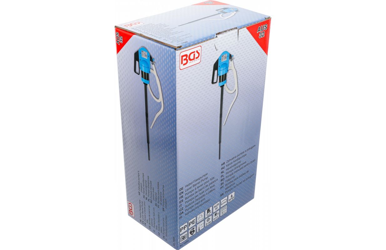 pārskaitīšanai šķidrumus piemērots mucām ar tilpumu 60 / 200 / 220 l piemērots sekojošiem šķidrumiem: AUS32, ūdens, eļļošanas šķidrumi, stiklu mazgāšanas šķidrums, antifrīzs, maigi mazgāšanas līdzekļi, lauksaimniecības ķīmiskās vielas utt. piegādes apjoms: 0,5 l par gājienu ražotspēja 20 l/min izsūknēšanas caurule ar iespēju pieslēgt 350 - 980 mm ar 2 m elastīgu šļūteni adaptera vītnes izmērs: 2" BSP ar 2 adapteriem 56 x 4 un 70 x 6 plastmasas mucām pamata materiāli: polipropilēns, polietilēns, fluor elastomēra blīves