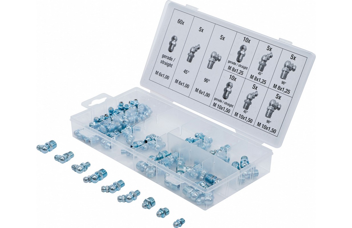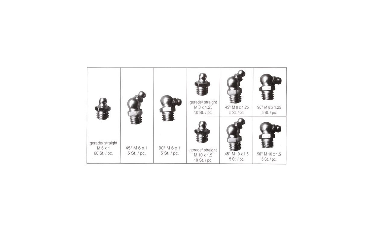 piegādes apjoms: 60 eļļošanas veidgabali M6 x 1,00, taisni