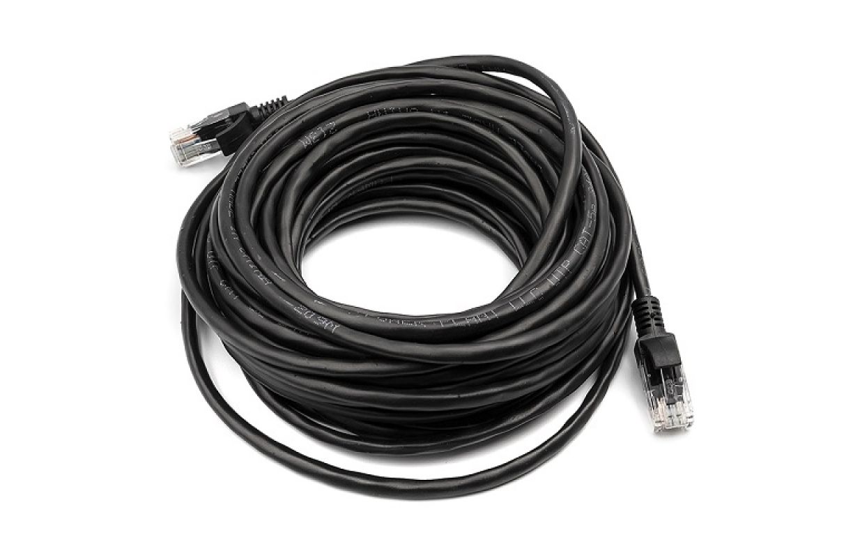 Augstas kvalitātes Cat5E kabelis un RJ savienotājs.
