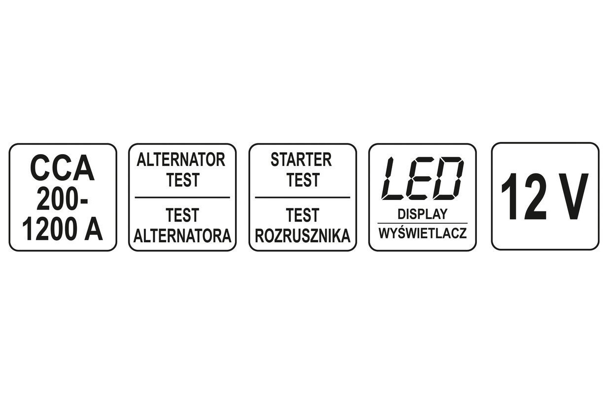 Tas ļauj pārbaudīt 12V akumulatorus automašīnās, furgonos un motociklos, kā arī novērtēt palaišanas sistēmu.