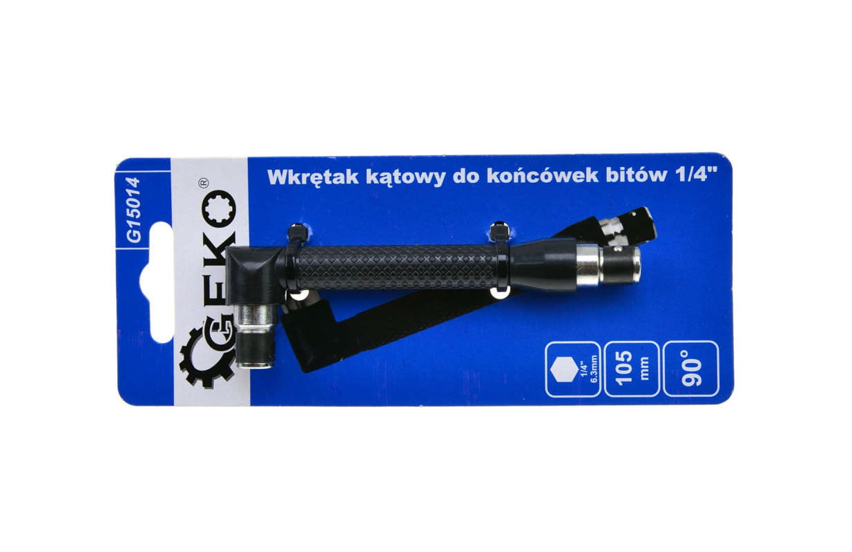 Угловая отвертка , подходящая для бит 1/4". Незаменим в местах, где отвертки и ручные шуруповерты не могут быть использованы напрямую из-за ограниченного пространства для маневра. Изготовлен из инструментальной стали CrV.