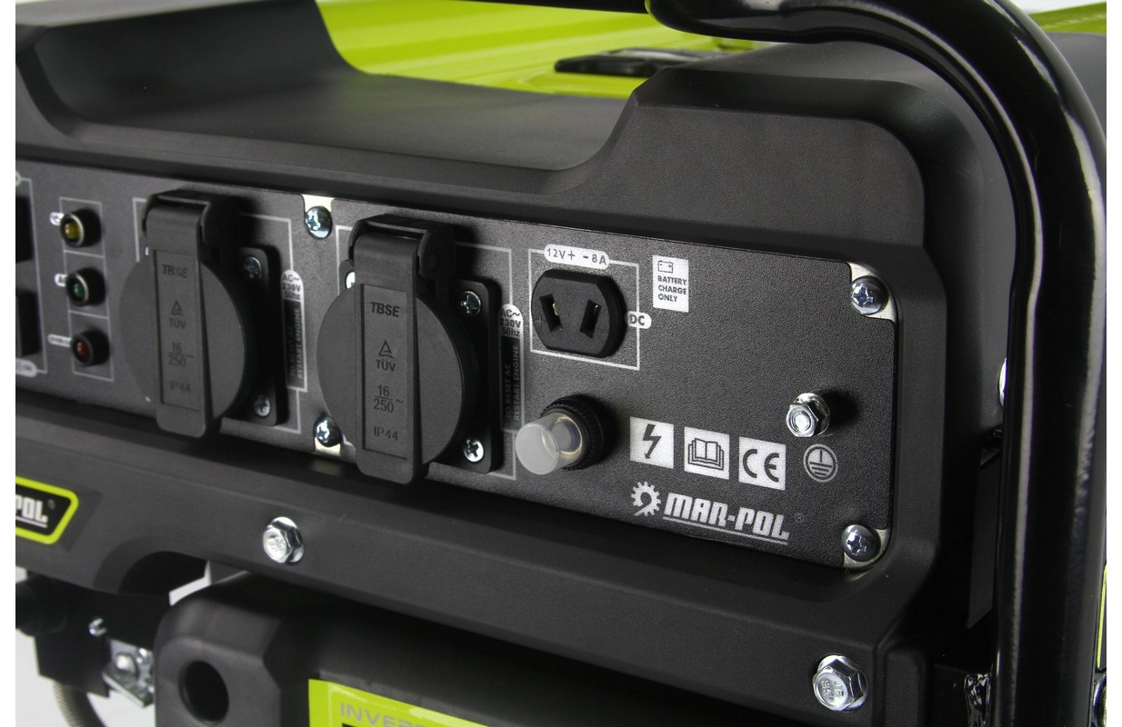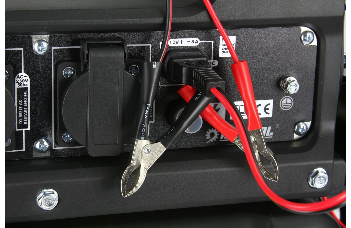 Розетки 230В с электронной защитой - пропадание тока при перегрузке или неконтролируемом коротком замыкании (генератор должен быть выключен и перезапущен, чтобы в розетках появился ток)