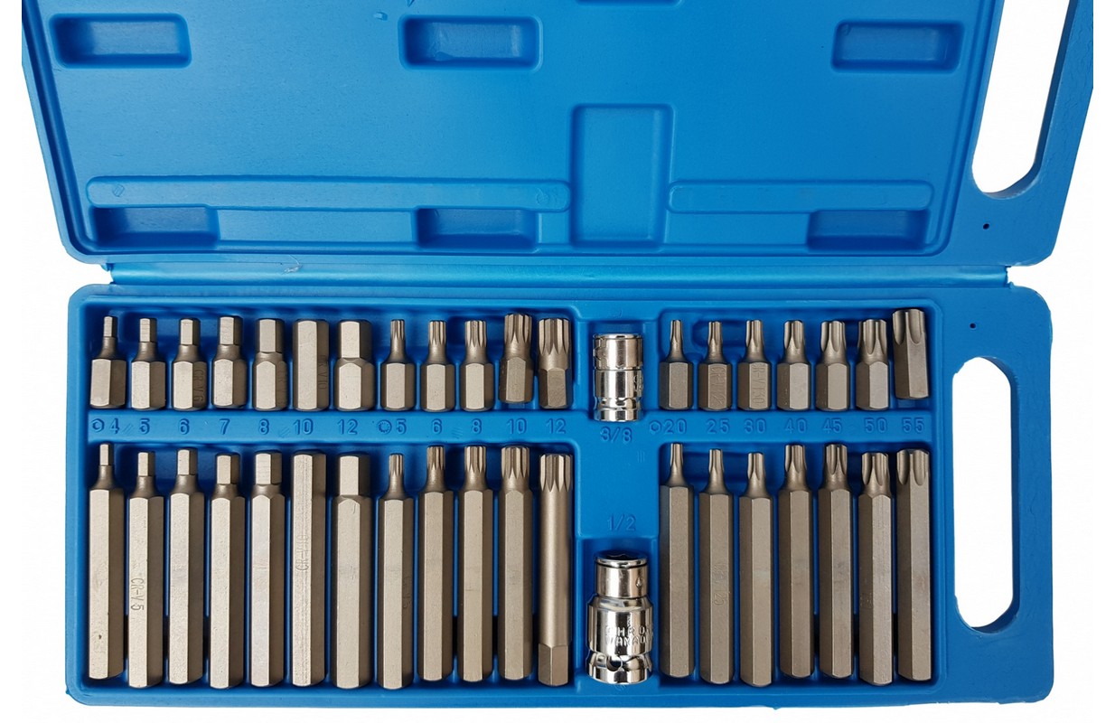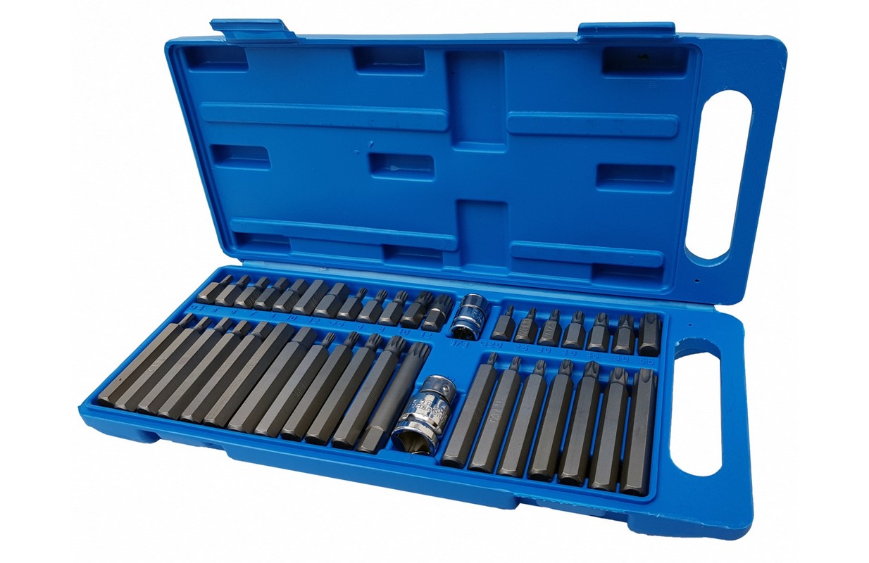 Набор ключей для откручивания специальных винтов: шестигранник, торкс, шлиц. Изготовлен из хромованадиевой стали Crv. Разнообразие бит дает возможность выполнять множество работ в сфере механических и автомобильных услуг. Крючки закреплены в шестигранной ручке 10 мм, адаптированной для использования с трещоткой 1/2 "и 3/8".