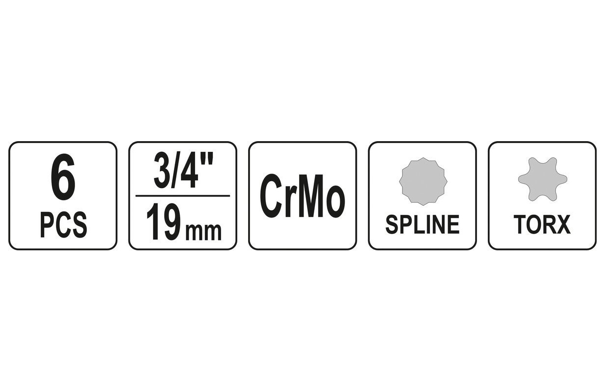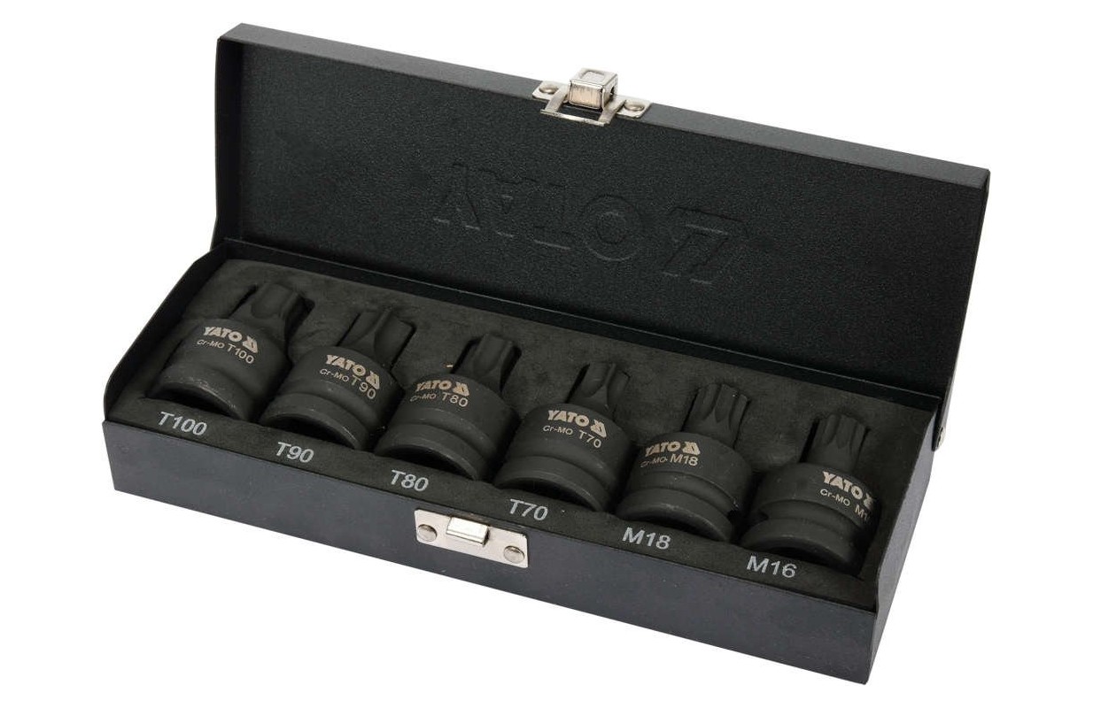Набор ударных торцевых головок 20 мм (3/4") | T-Star (Torx) T70 - T100 | spline M16-M18 | 6 шт. (YT-10653)