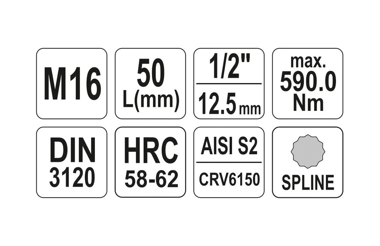 Головка c вставкой SPLINE М16 1/2" (YT-04346)