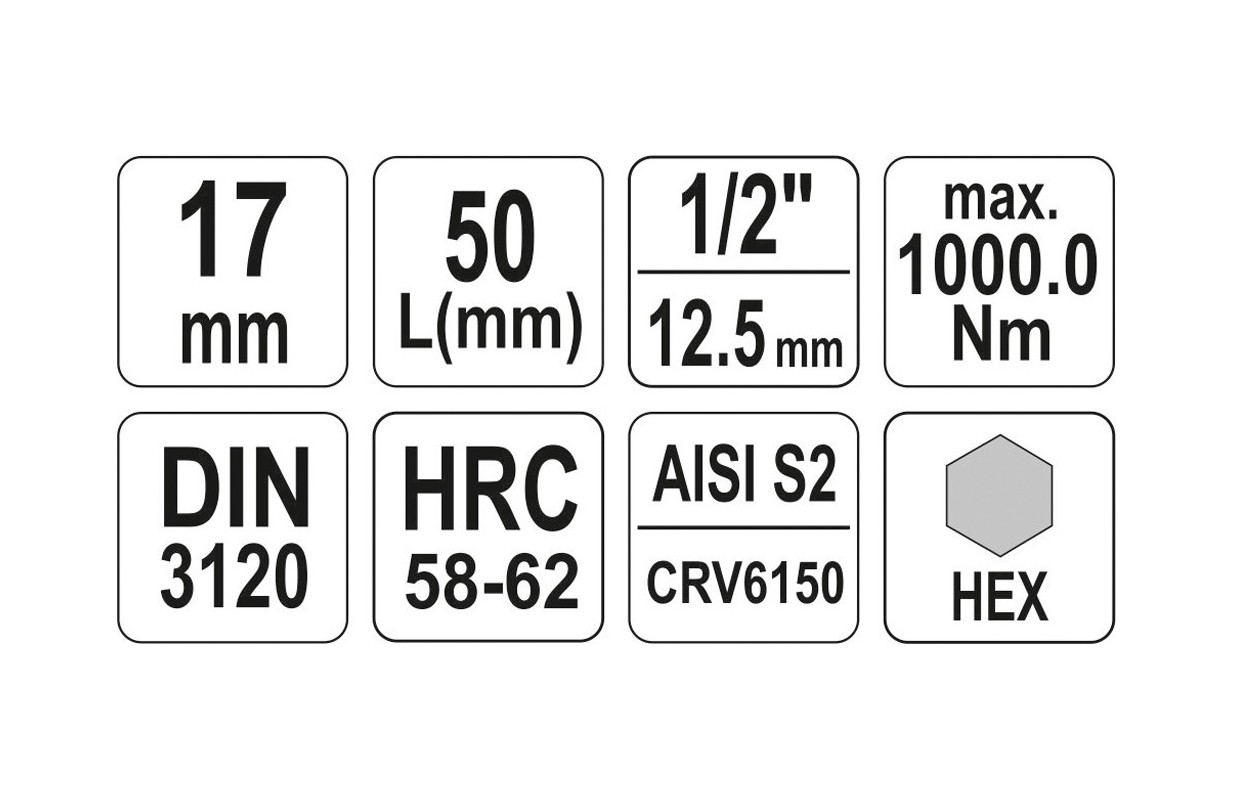 Головка торцквая c вставкой HEX 1/2" 17мм (YT-04388)