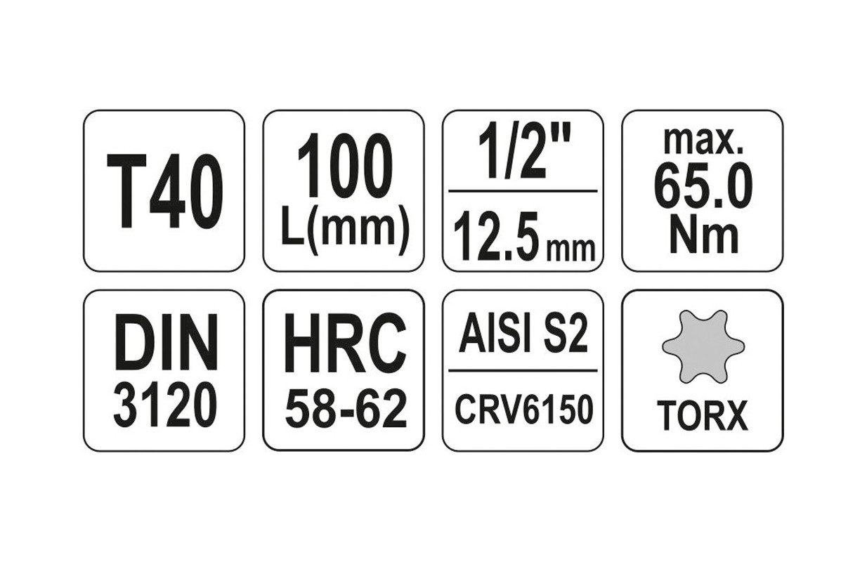 Головка торцевая c вставкой TORX 1/2"Т40 L100мм (YT-04324)