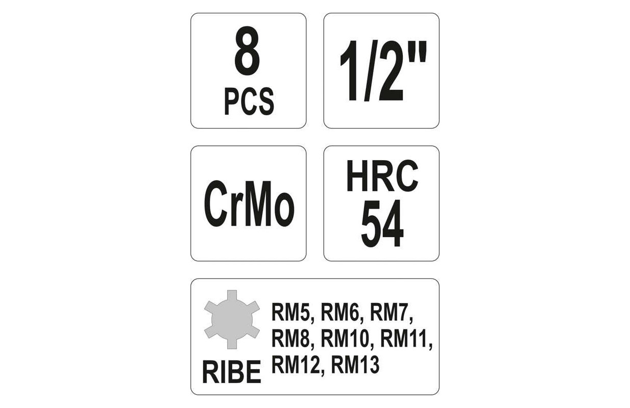 Набор торцевых ударных головок (RIBE) 8шт. 1/2" (YT-1068)