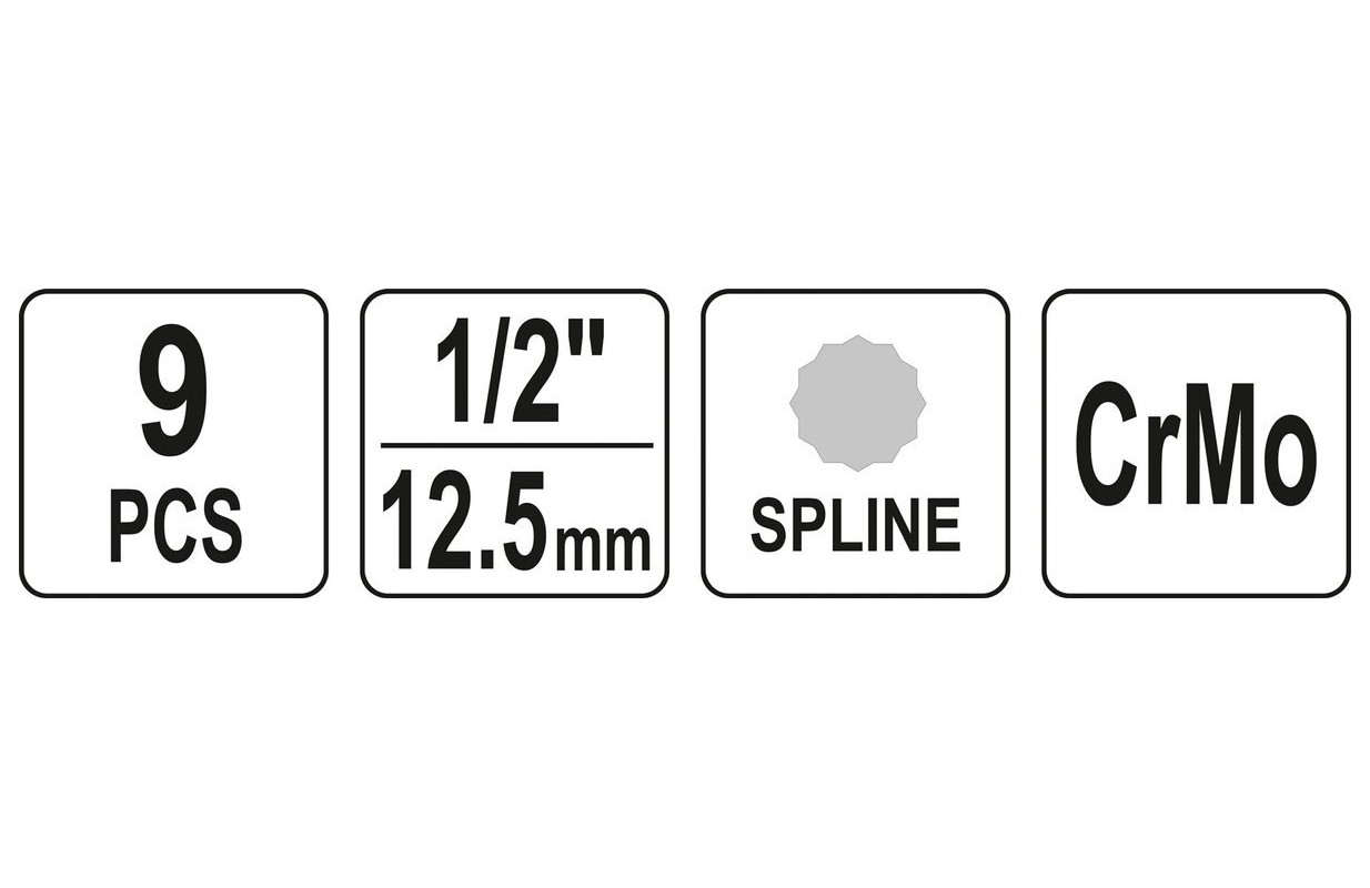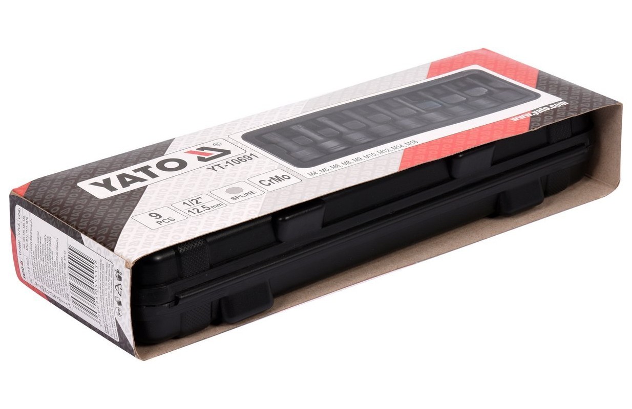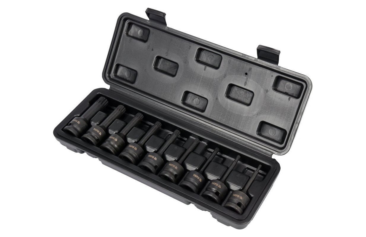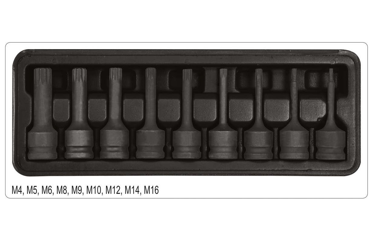 Набор ударных бит | 12,5 мм (1/2") | Сплайн (для XZN) M4 - M16 | 9 шт. (YT-10691)