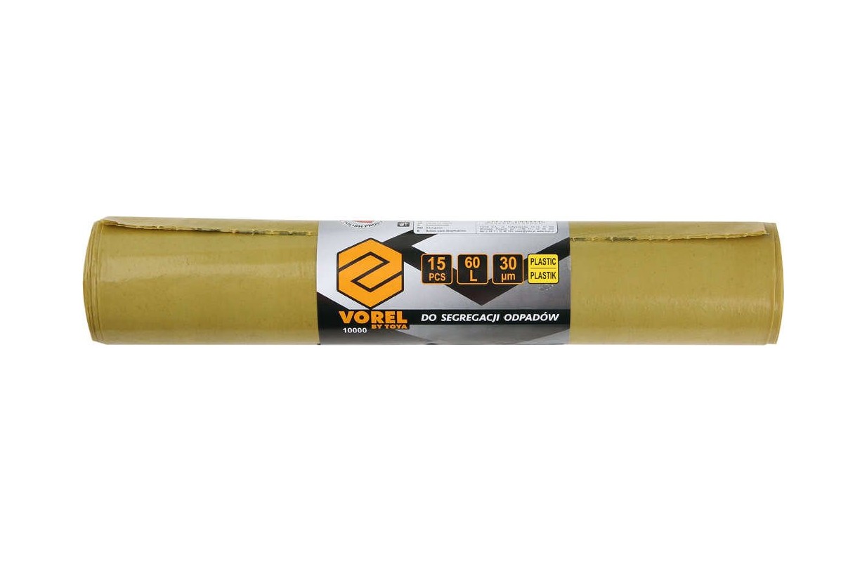 Мешки для мусора Vorel 60 л. Изготовлен из прочной фольги толщиной 0,030 мм, высотой 0,70 м и шириной 0,60 м. В одной упаковке содержится 15 пакетов соответствующей растяжки и прочных швов. Желтый продукт предназначен для выбрасывания чистой фольги, пакетов из фольги, бутылок, стаканчиков и пластиковых контейнеров и т. д. Собранные отходы, независимо от их вида, должны быть чистыми. Прежде чем выбросить ПЭТ-бутылку, раздавите ее как можно тщательнее.