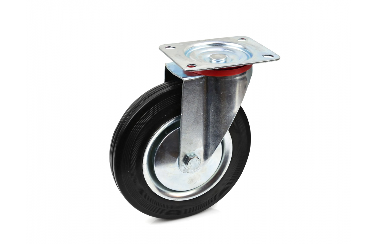 Вращающееся колесо диаметром 200мм. Сердечник колеса (обод) и корпус изготовлены из стали, а шина изготовлена из высококачественной резины , которая улучшает сцепление колес, а также предотвращает царапины на земле.