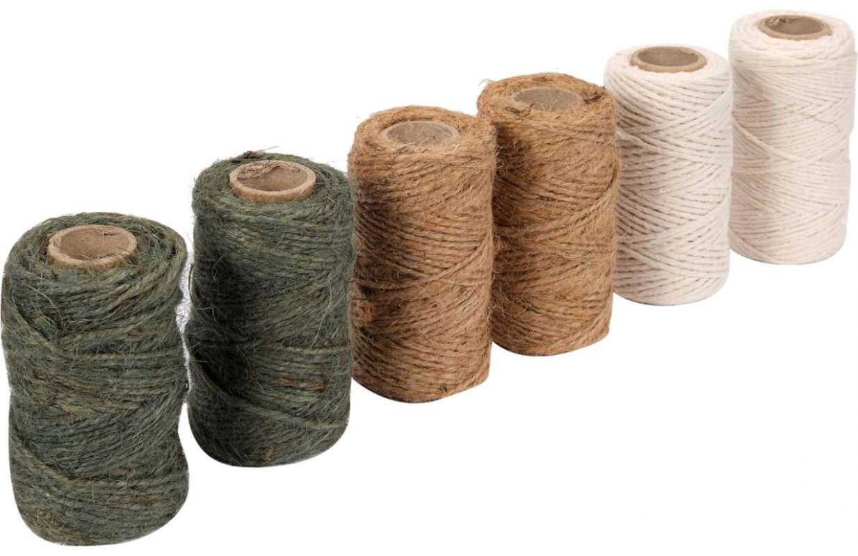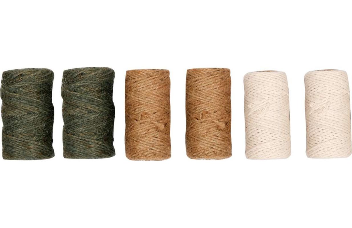 Набор из 6 джутовых и хлопчатобумажных шнуров.