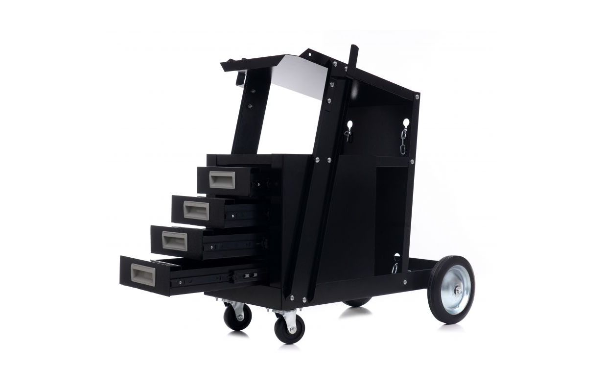 Профессиональная сварочная тележка известного бренда Kraft&Dele — идеальное решение для транспортировки сварочных аппаратов MIG/TIG или плазменной сварки, а также для любого использования в мастерских.