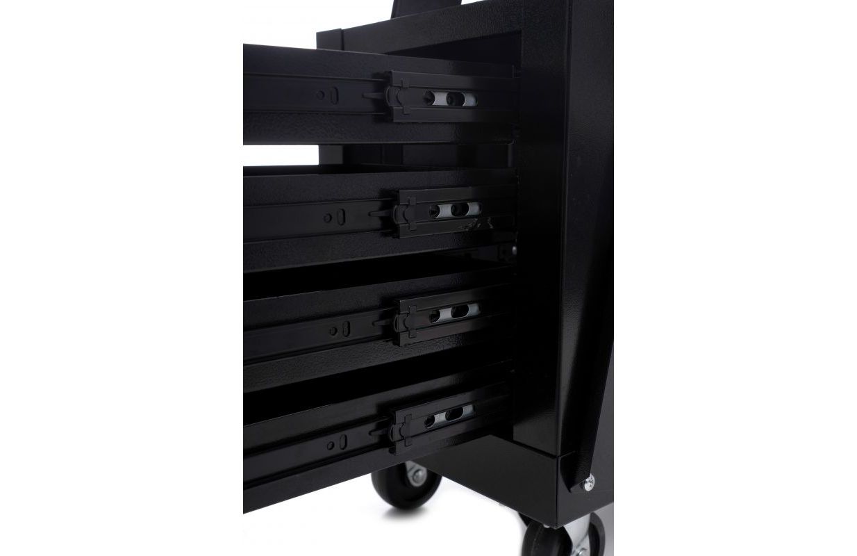 Тележка имеет удлиненную верхнюю полку и 4 ящика!