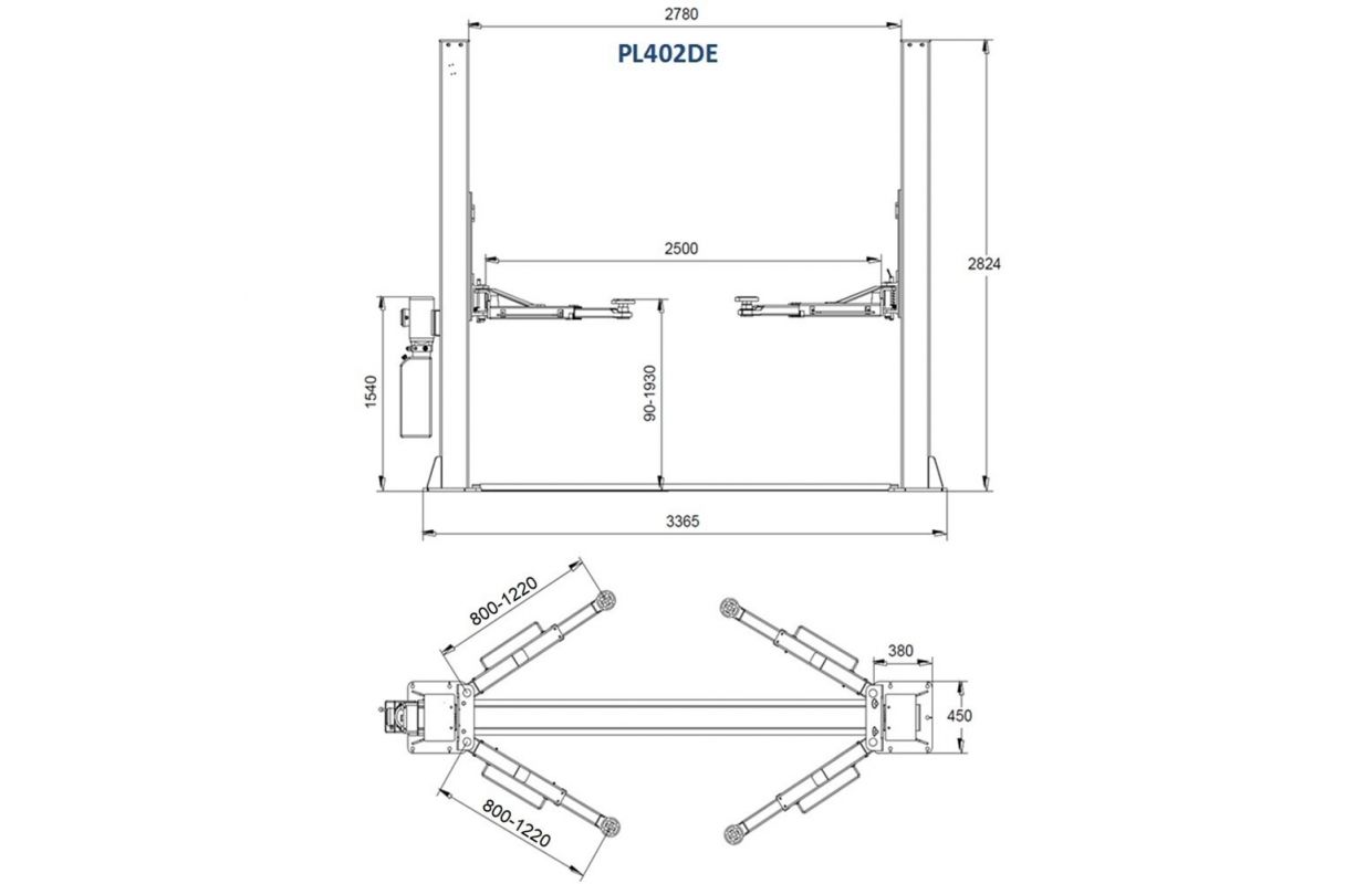 Двухстоечный гидравлический подъемник с электромагнитным расцеплением, 4,0 т (PL402DEGR)