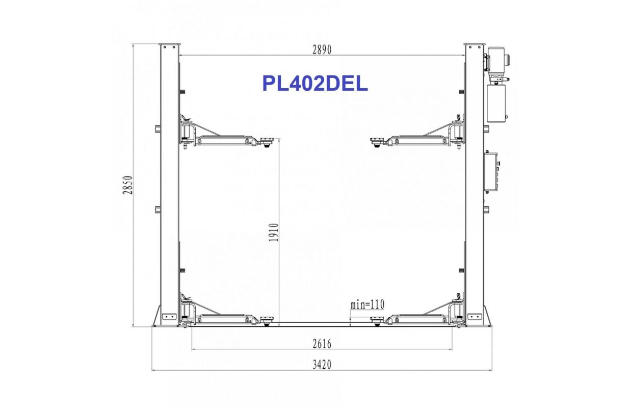 Гидравлический двухстоечный подъемник с электромагнитной блокировкой, (с выдвижными когтями) 4,0т - 4,0т, 220В (PL402DEL220V)
