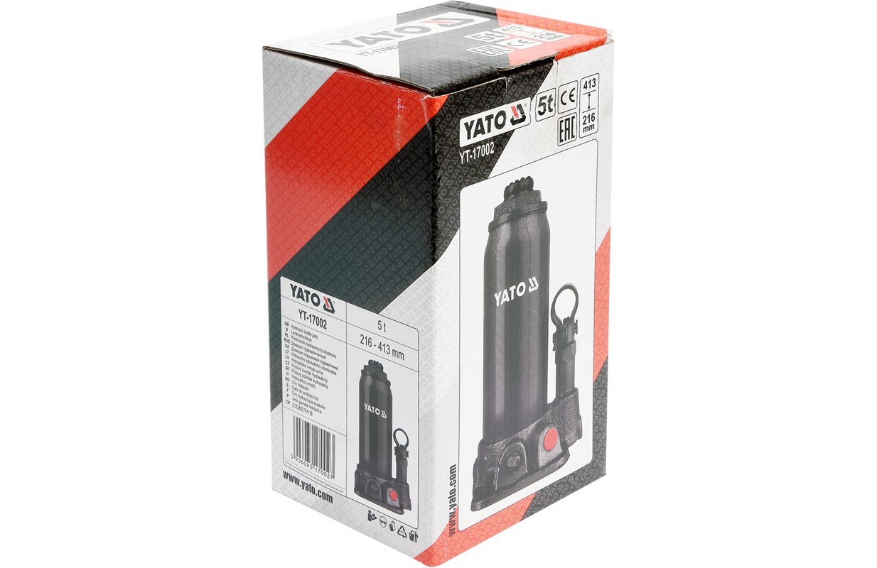 Профессиональная гидравлическая подъемная штанга YATO с клапанной системой, которая точно дозирует поток масла. Грузоподъемность составляет 5 тонн, диапазон подъема - от 216 мм до 413 мм. Отличается небольшими размерами и весом, что важно при погрузочно-разгрузочных работах и хранении. Незаменим в автосервисах и станциях технического обслуживания.