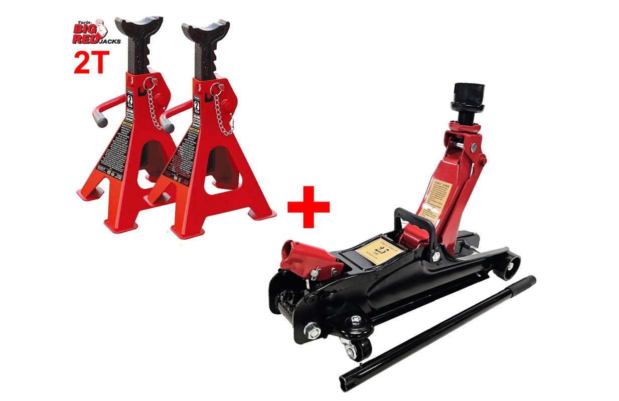 Комплект: Гидравлический подкатной домкрат 2,5т + Усиленная страховочная подставка 2Т, 2 шт BIG RED