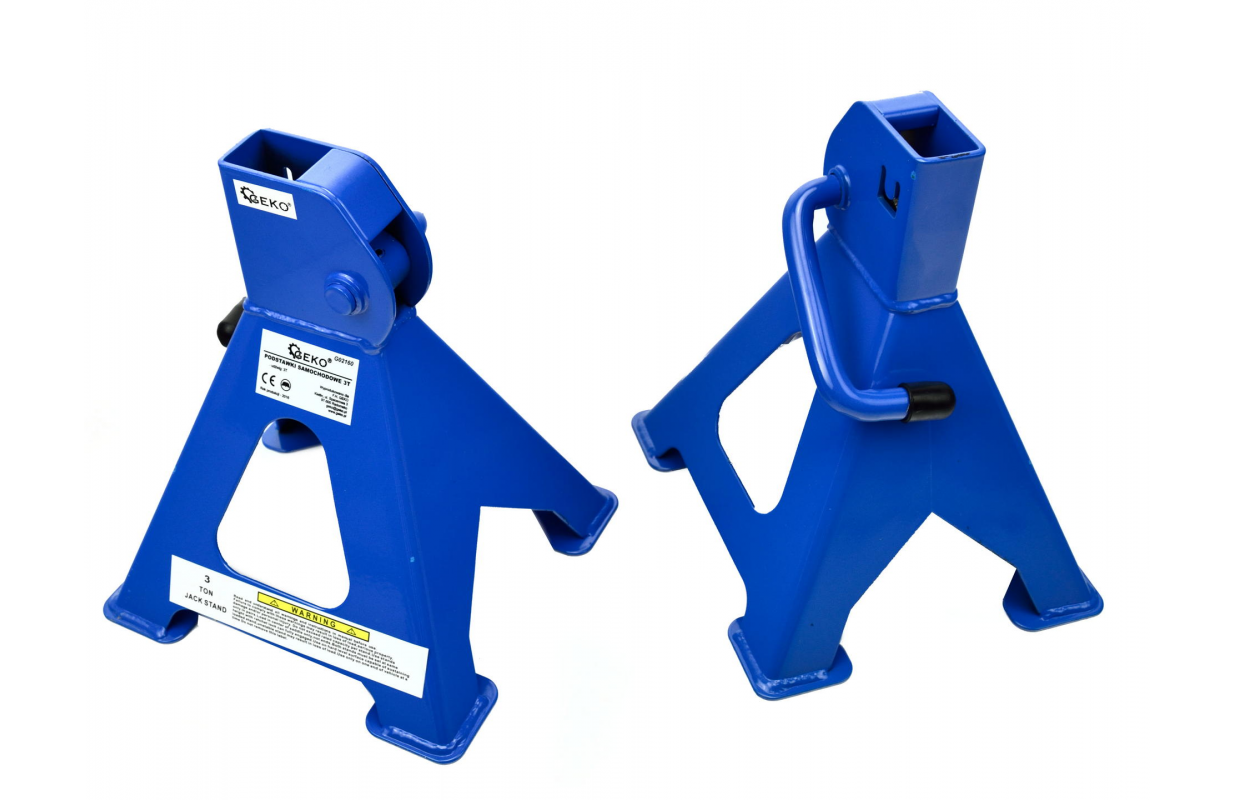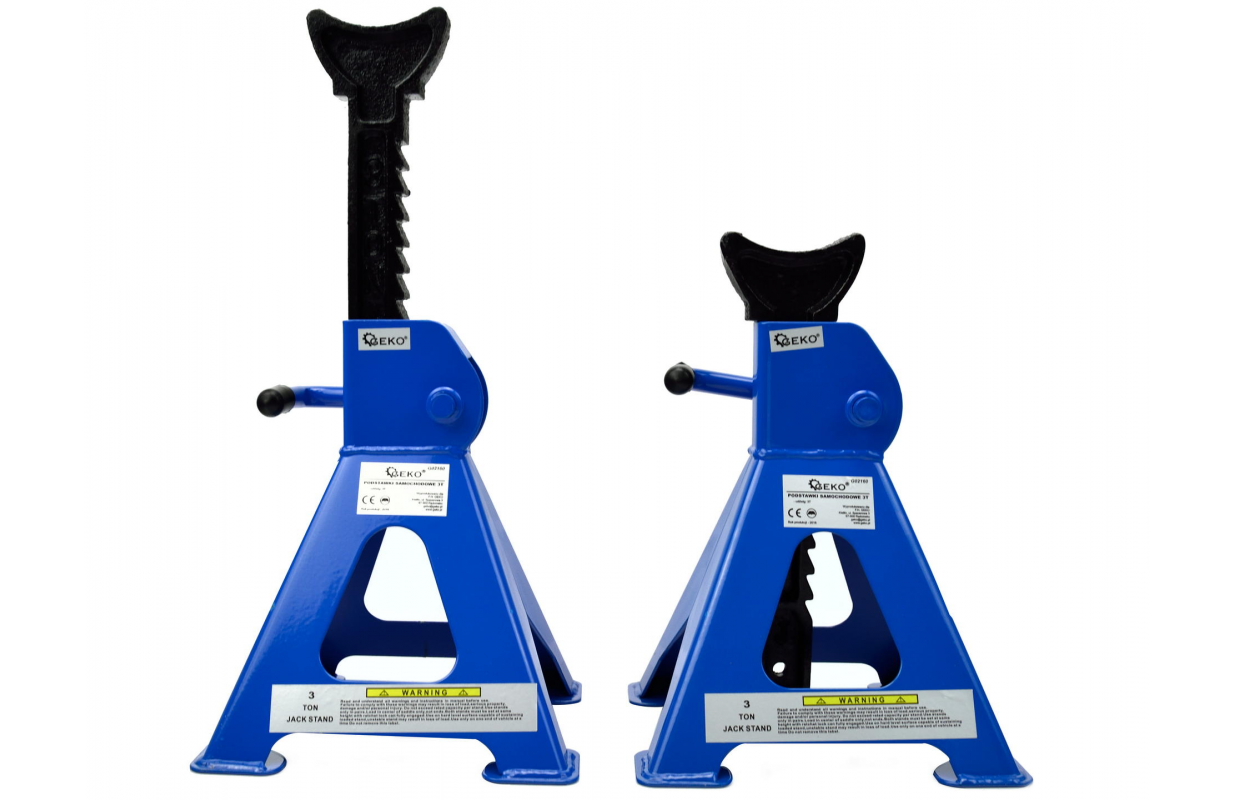 Набор автомобильных подставок 3T. Очень прочные стойки из толстого стального листа с храповым механизмом, который позволяет очень точно регулировать высоту на многих уровнях.