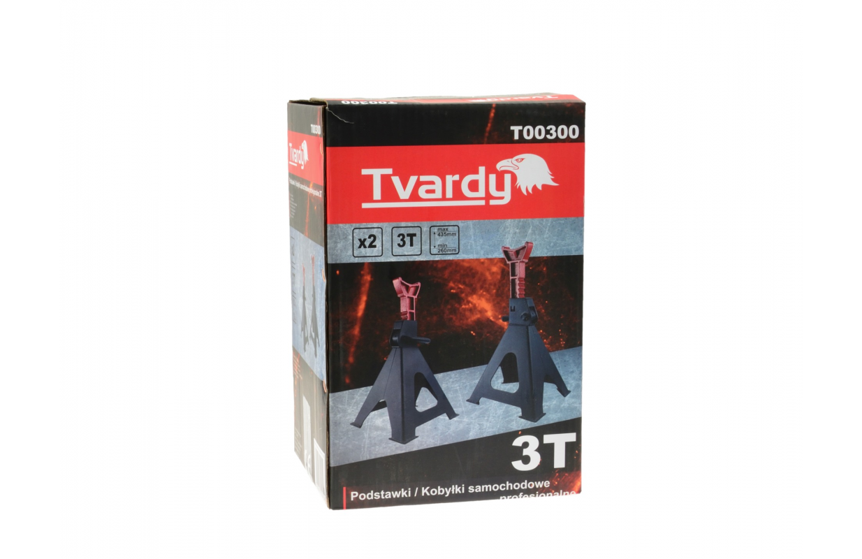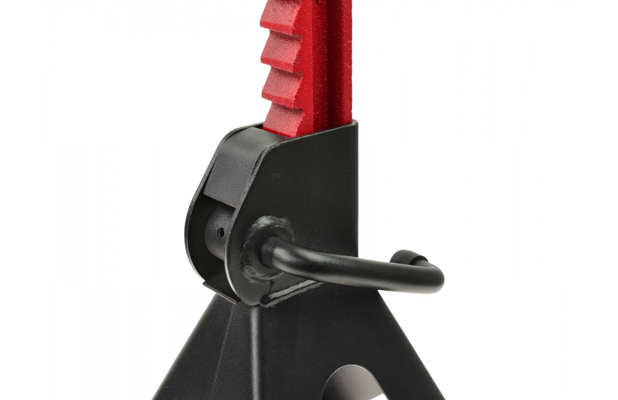 Набор профессиональных автомобильных подставок 3Т. Очень прочно изготовленные стеллажи из толстого стального листа с порошковым покрытием. Храповой механизм позволяет точно устанавливать высоту на нескольких уровнях.