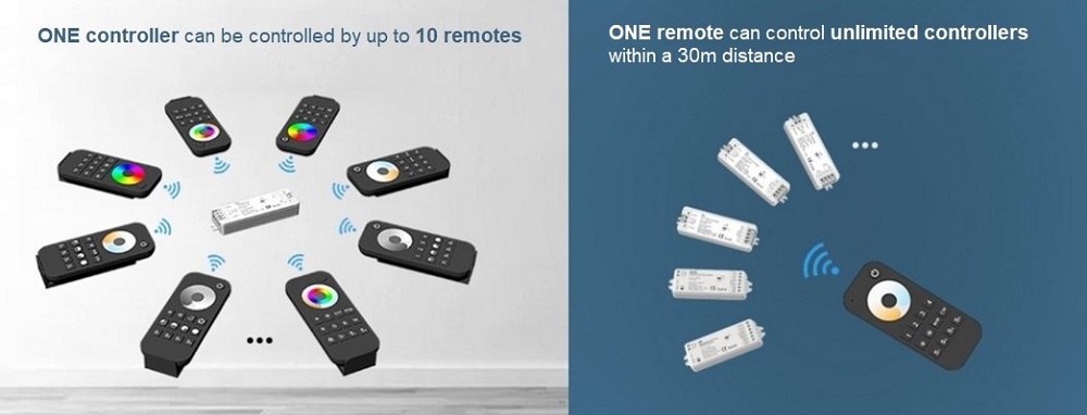 Автоматически переходит в спящий режим. Активируется нажатием любой кнопки. В режиме ожидания батарейки служат до 2 лет. Рабочая частота радиочастотного пульта дистанционного управления составляет 2,4 ГГц, что обеспечивает стабильный сигнал на расстоянии до 30 м. Сигнал меньше подвержен помехам, таким как стены, перегородки и т. д. Компактный, карманный дизайн. Пульт дистанционного управления RT10 универсален и может работать с различными светодиодными контроллерами или беспроводными настенными выключателями. В комплекте удобный настенный кронштейн.
