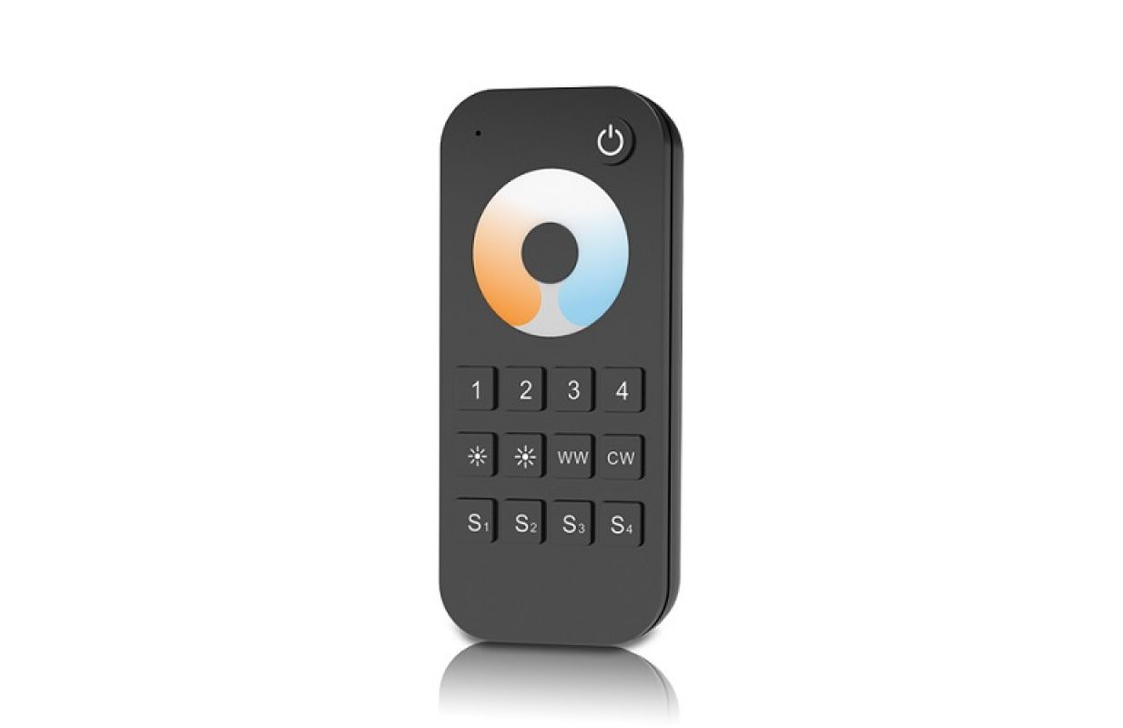 Радиочастотный пульт дистанционного управления для двухцветной светодиодной ленты (WW/CW), регулировка температуры, 2,4 ГГц, 4 зоны, с сенсорным колесом, поддерживает 4 сценария и 10 режимов освещения.