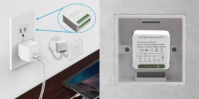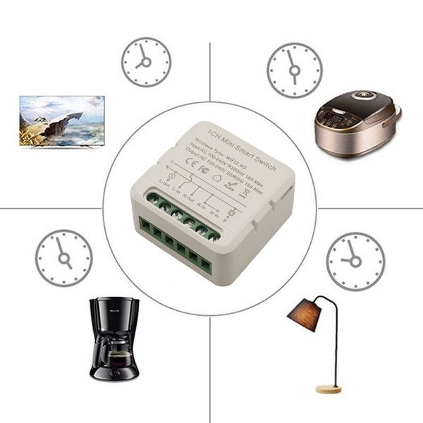 Умный 1-канальный маленький переключатель для электрических устройств, поддерживающий дистанционное управление через Wi-Fi с приложениями Tuya Smart и Smart Life.