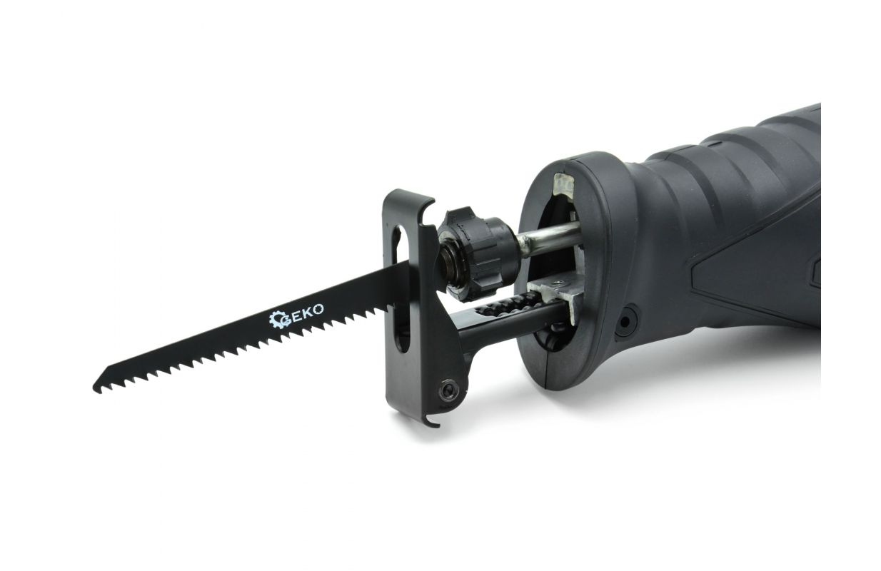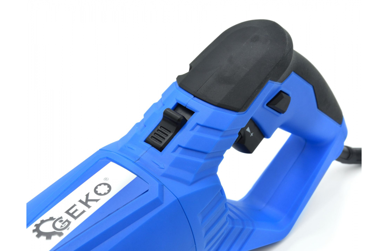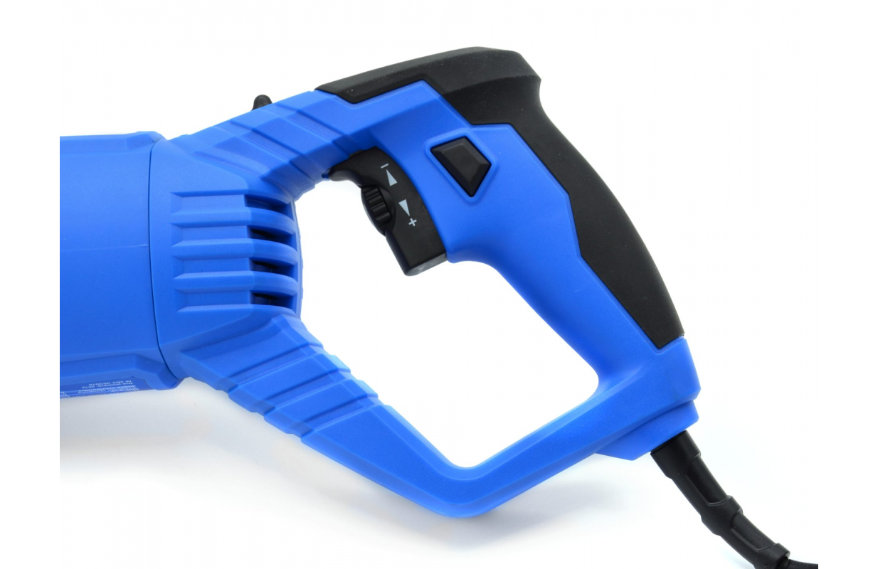 Пила оснащена электродвигателем мощностью 850 Вт для эффективной и точной резки. Устройство позволяет резать материалы максимальной толщиной 115 мм. Пила имеет регулировку скорости, что делает ее идеальной для различных видов строительных, ремонтных и отделочных работ. Дополнительным преимуществом устройства является безинструментальная система крепления ножей.