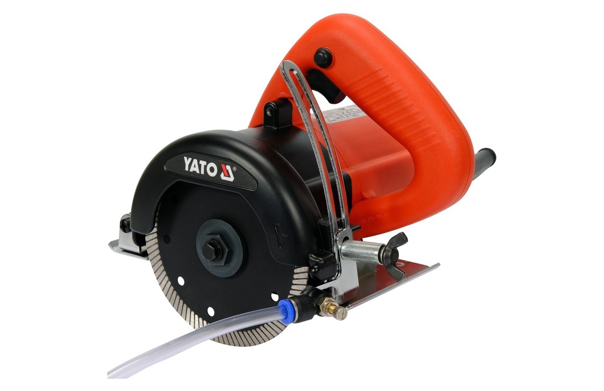 Распылитель воды регулируется, а его диаметр подходит для гидрораспылителя 18 В YT-86211, а также для садовых опрыскивателей. Благодаря этой особенности в воздухе нет пыли, рез идет быстрее, а лезвие меньше изнашивается, кромка материала не осыпается.