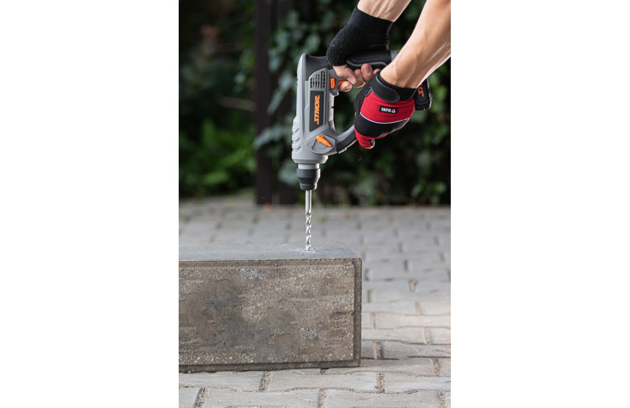 Молотковая дрель sds+ для сверления отверстий в твердом бетоне, кирпиче, металле и дереве (при отключенной функции отбойного молотка). Электропневматическая система sds+ позволяет быстро сверлить отверстия в стенах и потолках, при монтаже освещения, подвесных потолков или полок. Небольшая масса и габариты устройства определяют удобство работы. Система sds+ избавляет от необходимости прижимать обычные сверла к стенам и потолкам во время сверления. В комплект входят сверла sds+ размерами: 6, 8, 10 мм. обороты: 0-900 об/мин