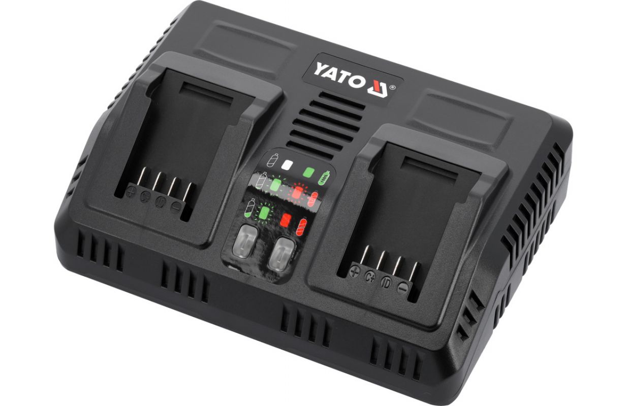 Быстрое двойное зарядное устройство для всех системных аккумуляторов YATO 18 В. Встроенная система тестирования эффективности и температуры батареи обеспечивает срок службы батареи. Он не начинает заряжаться, когда элементы слишком горячие. Аккумулятор, хранящийся при отрицательной температуре, начинает заряжаться, когда аккумулятор достигает температуры выше +5 градусов по Цельсию.