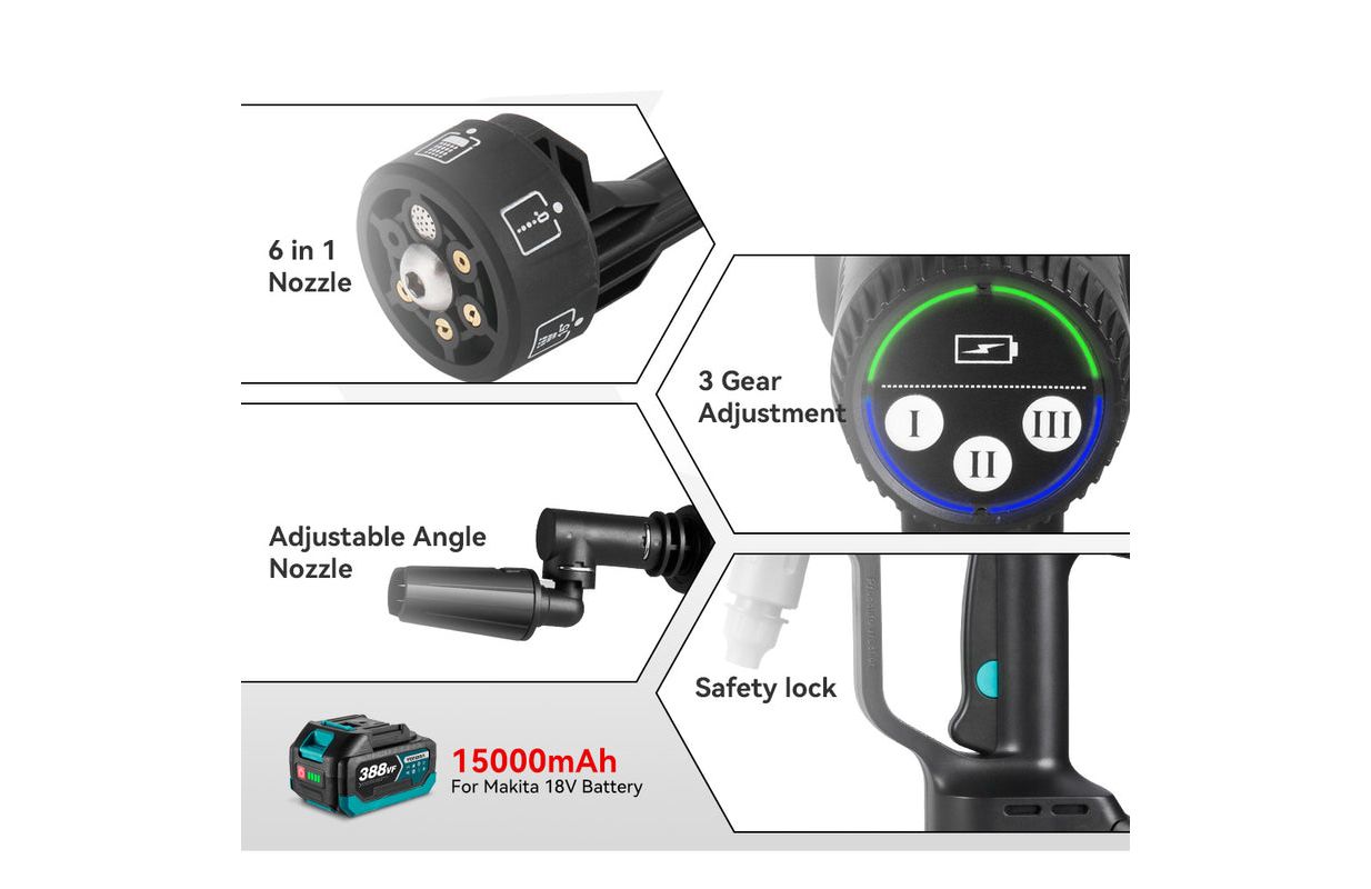 Оснащен удобными функциями, такими как регулируемые настройки давления и беспроблемная сборка, что делает его подходящим как для начинающих, так и для опытных пользователей. Наслаждайтесь бесперебойной и эффективной очисткой автомобиля.