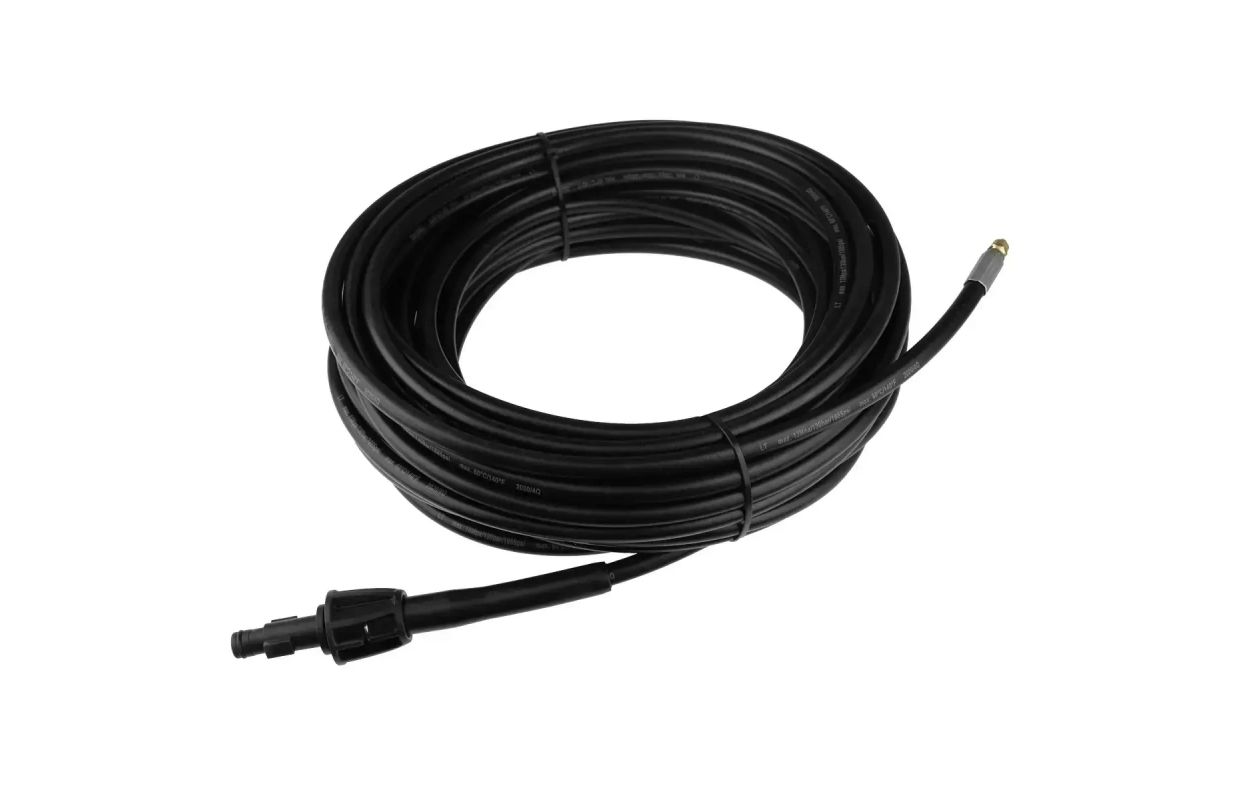 Шланг дренажный для очистителей высокого давления DEDRA DED8819, DED8821, DED8822, DED8824 и DED8825. Длина шланга 20 м. Благодаря специальной головке вода подается под высоким давлением, а форма водяной рубашки эффективно разрушает засоры из листьев, грязи и органических веществ.