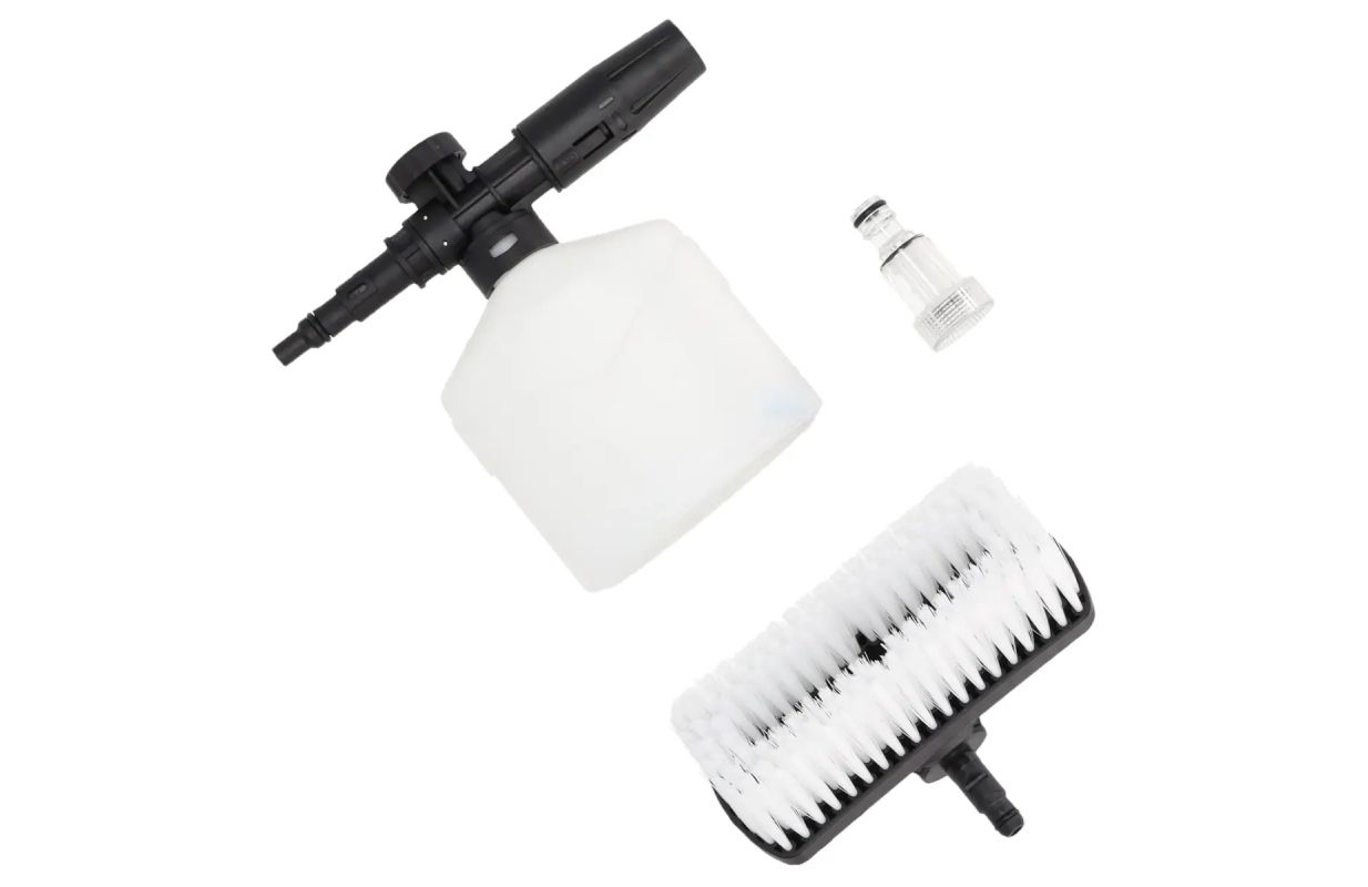 Мойка создает высокое давление (макс. 195 бар) для легкого удаления стойких загрязнений с различных поверхностей. Использование мойки высокого давления вместе с подходящим химическим средством позволяет: очищать транспортные средства, машины, инструменты, террасы, фасады, лестницы, садовые инструменты и т.д. Мойка поставляется с двумя копьями в комплекте - одно из нержавеющей стали, другое из пластика для быстрой смены насадок (щеток, сопел).