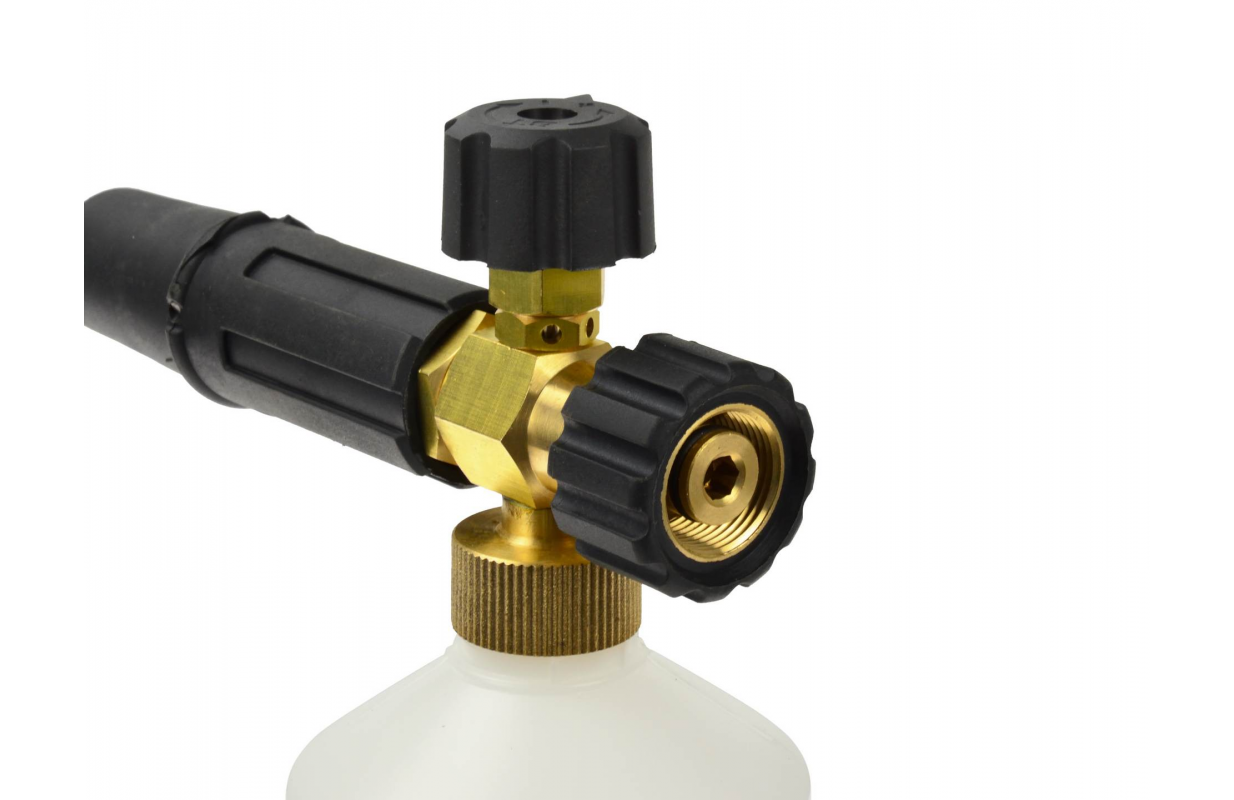 Высококачественный профессиональный пенообразователь, разработанный для моек высокого давления серии KARCHER HD. Корпус из латуни гарантирует длительную и безотказную эксплуатацию. Пенопластовая машина дает гораздо больше возможностей по сравнению с мойками высокого давления, оснащенными встроенным баком для моющего средства. Используя пенопластовую машину, мы имеем возможность использовать более сильные химические вещества (даже агрессивные), потому что моющее средство не включается во внутреннюю циркуляцию мойки высокого давления, а берется из лотка пенопласта, затянутого непосредственно к пистолету высокого давления.