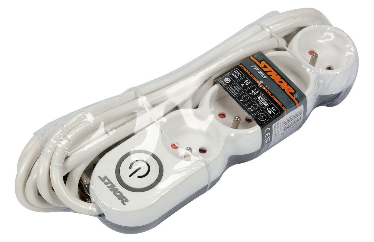 Удлинитель STHOR 72355 с розетками с заземлением, замком для защиты от детей и выключателем во всех розетках. Прочный трехжильный кабель увеличенного сечения в оболочке из ПВХ позволяет использовать удлинитель как дома, так и в офисе. Он легко может питать требовательные приемники, такие как чайник, электрогриль, утюг, пылесос, кухонный комбайн для смешивания пирогов или измельчения мяса и т. д. Корпус выполнен из высококачественного пластика с отверстиями и монтажными кронштейнами в задней части, что позволяет удлинитель для крепления, например, к столешнице или стене.