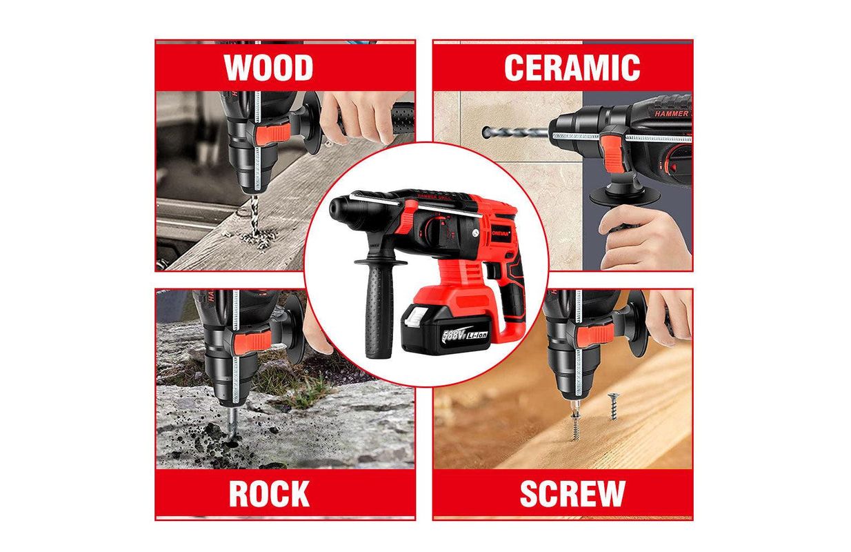 ● Литиевая батарея большой емкости, длительный срок службы, 10 элементов качества интеллектуальной защиты ● Бесступенчатая регулировка скорости, принцип автоматической коробки передач автомобиля, переключатель регулирует скорость вала и крутящий момент машины ● Подходит для стеллажей на строительной площадке, технического обслуживания, деревообработки и т. Д. ● Бесщеточный двигатель не генерирует искр во время работы, и двигатель не изнашивается. ● Дополнительная рукоятка на 360 °, работа плавная, а рабочее положение можно регулировать по желанию, чтобы адаптироваться к различным рабочим потребностям. ● Беспроводная работа, избавиться от системы «линия» легко, легкий и портативный ● Универсальный электрический молоток, четыре функции в одной, свободно переключаются функции молотка / дрели / электрической кирки. Режим электрической дрели: мощное сверление (необходимо соответствовать сверлильному патрону) Режим электрического удара: более высокая эффективность бурения по сравнению с электрическим молотом переменного тока Функция регулировки: установите плоское долото, регулируемое направление Power Funtion: Прорезь для воды и электричества, удобно