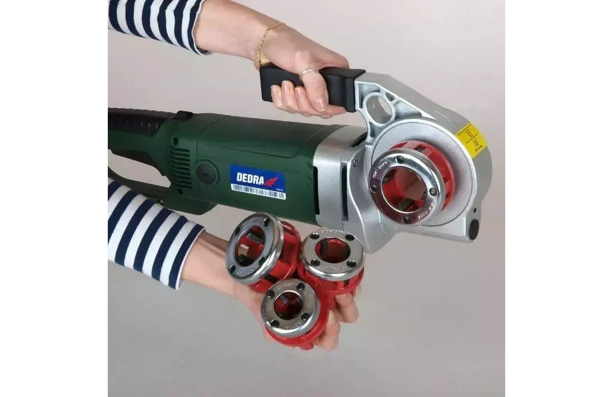 Электрический трубонарезной станок модели DED7511, представляет собой устройство, с помощью которого можно быстро и эффективно нарезать наружную резьбу на стальных трубах. В комплект входит набор из четырех резьбонарезных плашек с ножами, позволяющими получать резьбу 1/2", 3/4", 1" и 1 -1/4".
