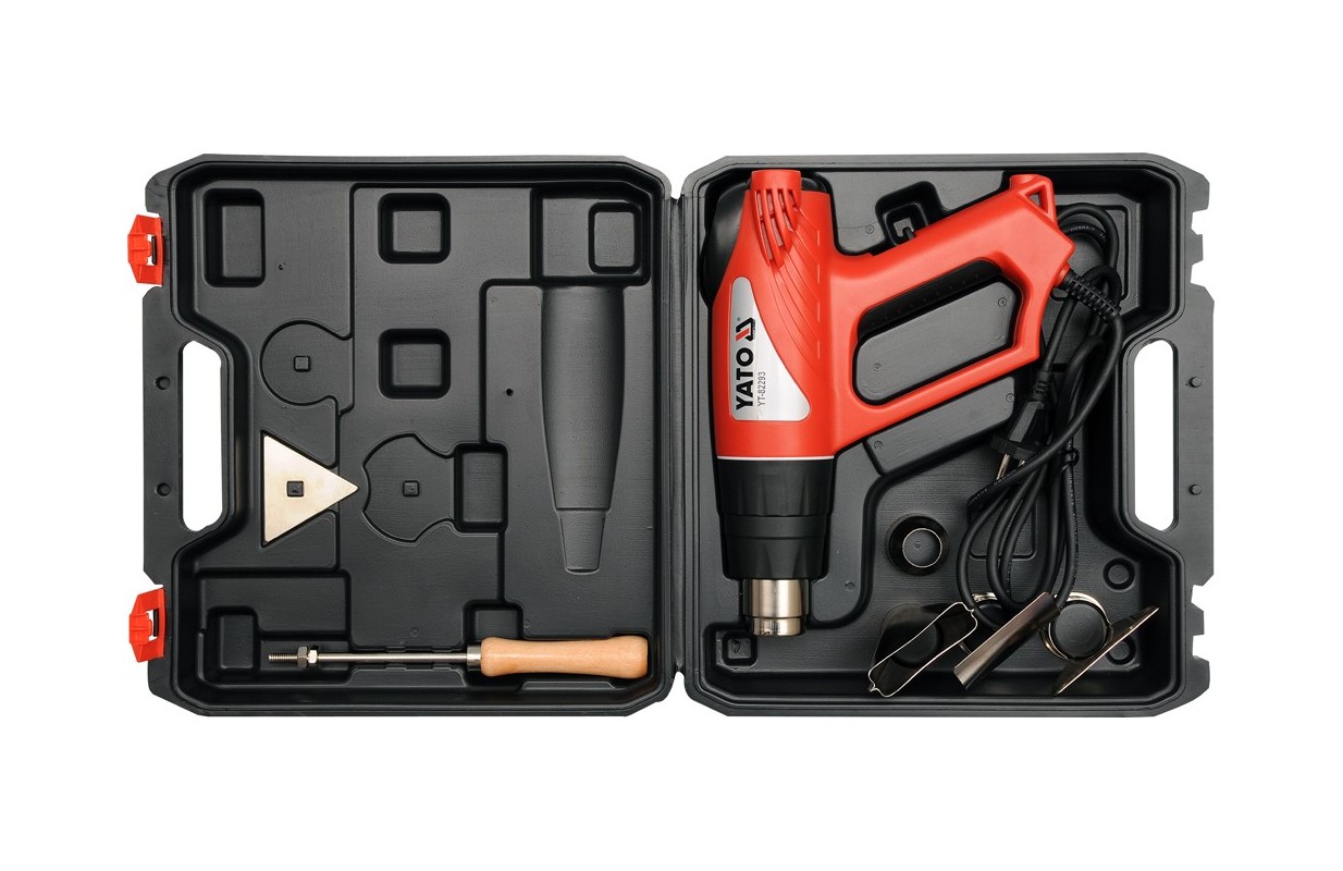 Он имеет ЖК-экран, позволяющий установить необходимую температуру с точной регулировкой. В комплект входят аксессуары, облегчающие работу с пистолетом.