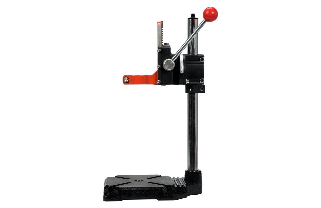 Легкий и прочный штатив с вертикально вращающейся головкой. Предназначен для точного сверления под углом 45 - 90 градусов. Функция сверления под вертикальным углом полезна, например, при выполнении невидимых соединений в столярных работах или при сверлении металла без риска соскальзывания сверла с металлической поверхности.