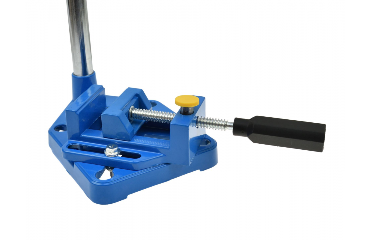 Станик для дрели с тисками. Легкая и прочная конструкция, а также удобный рычаг для управления штативом обеспечивают точность при сверлении. Использование универсального крепления для дрели (Euronorm ø 43мм) позволяет монтировать практически любое сверло в штатив.