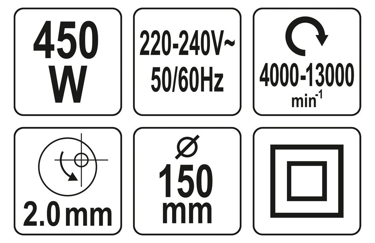 Мощная шлифовальная машина (450 Вт) в сочетании с переменной скоростью вращения – оптимальное сочетание для работы с деревом, удаления ржавчины и лакокрасочных покрытий. Плита диаметром 150 мм позволяет получить гладкую поверхность и, например, быстро очистить деревянную конструкцию с отслаивающимся слоем старой краски.