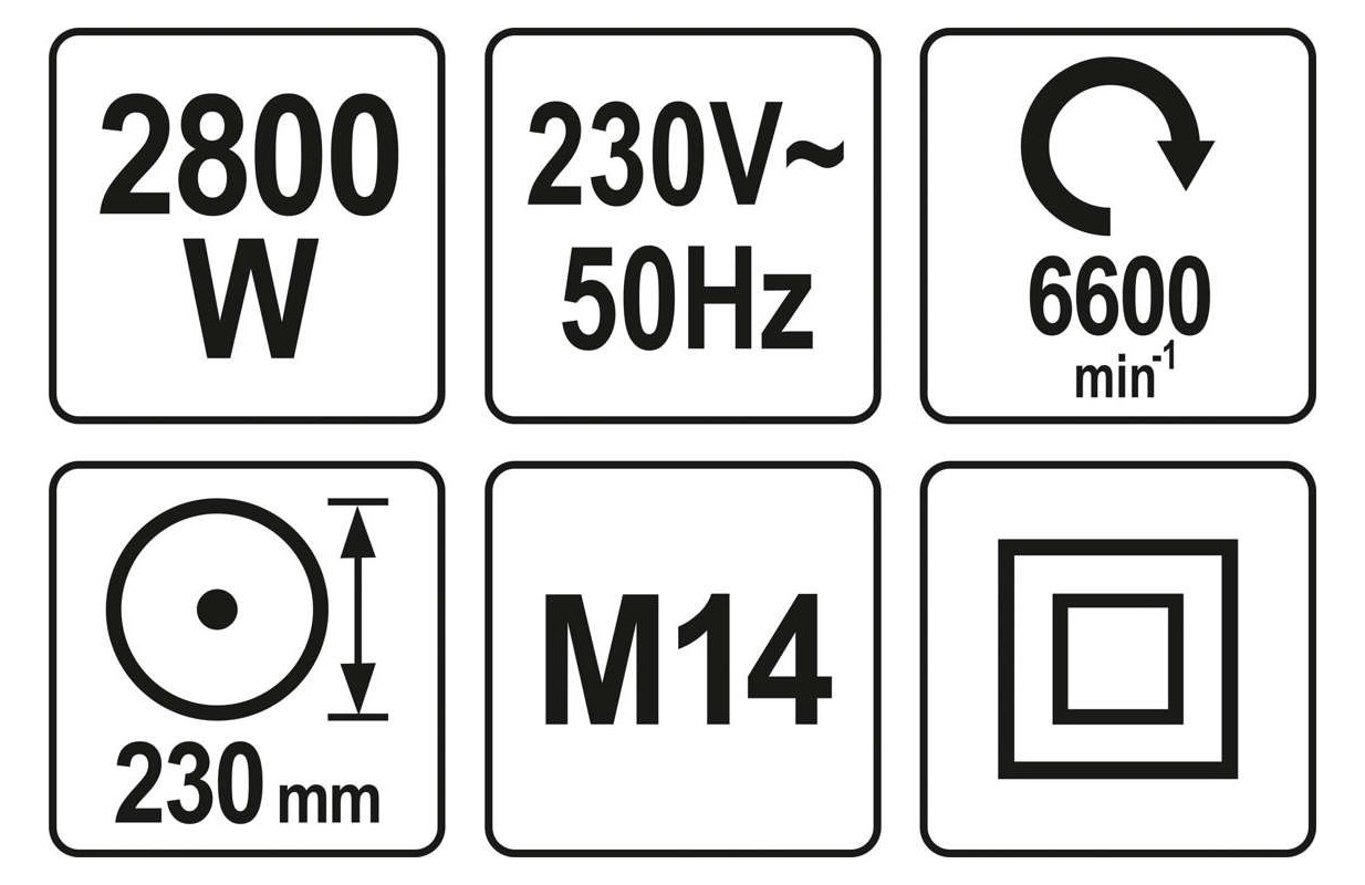УШМ YATO мощностью 2800 Вт, частотой вращения 6600 об/мин и диском 230 мм. Имеет вращающуюся ручку. Очень сильный квадрат для профессионалов. Идеально подходит для резки и шлифовки металлов и минеральных строительных материалов.