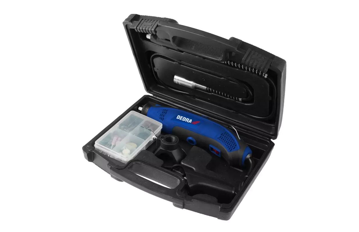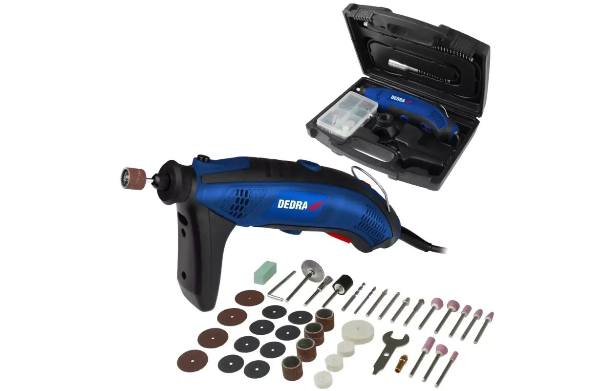 Мини-шлифмашина - один из популярных инструментов, который точно не будет лишним в домашней мастерской или у домашнего мастера. Компактный дизайн с продолговатой формой напоминает прямые шлифовальные машины, известные как прямые шлифовальные машины. Удобная рукоятка позволяет надежно удерживать инструмент. Прочная ножка позволяет безопасно опустить шлифовальную машину, не повредив заготовку или шпиндель. Комплект не мог бы быть полным без таких принадлежностей, как гибкий приводной вал, многочисленные рабочие насадки отрезные диски (сепараторы), абразивная бумага, абразивные круги, полировальный войлок, шлифовальные камни, алмазные фрезы, сверла HSS и элементы для их крепления. Питание шлифовальной машины осуществляется от обычной розетки 230 В. Мощный высокоскоростной двигатель 170 Вт имеет регулируемый диапазон оборотов 8000-35000 об/мин.