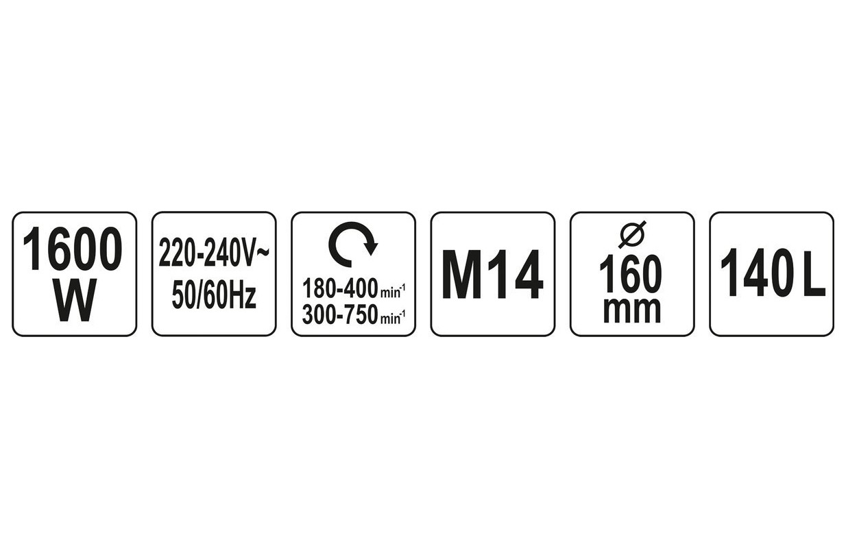 Мешалка YT-82607 1600Вт II шестерни с мешалкой диаметром 140мм