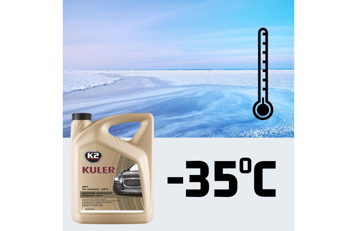 K2 KULER -35°C Может использоваться во всех типах радиаторов, особенно алюминиевых, и смешиваться с другими жидкостями одинаково высокого качества, независимо от цвета.
