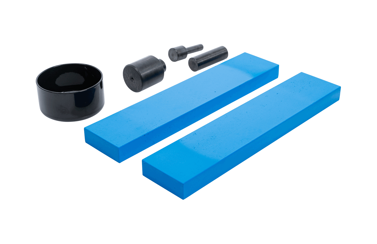 3 пуансона: Ø 12,5 мм (1/2 дюйма) | Ø 25 мм (1 дюйм) | Ø 50 мм (2 ") 2 стальные пластины: 355 мм (14 дюймов) x 75 мм (3 дюйма) x 50 мм (2 дюйма) 1 подшипниковый щит